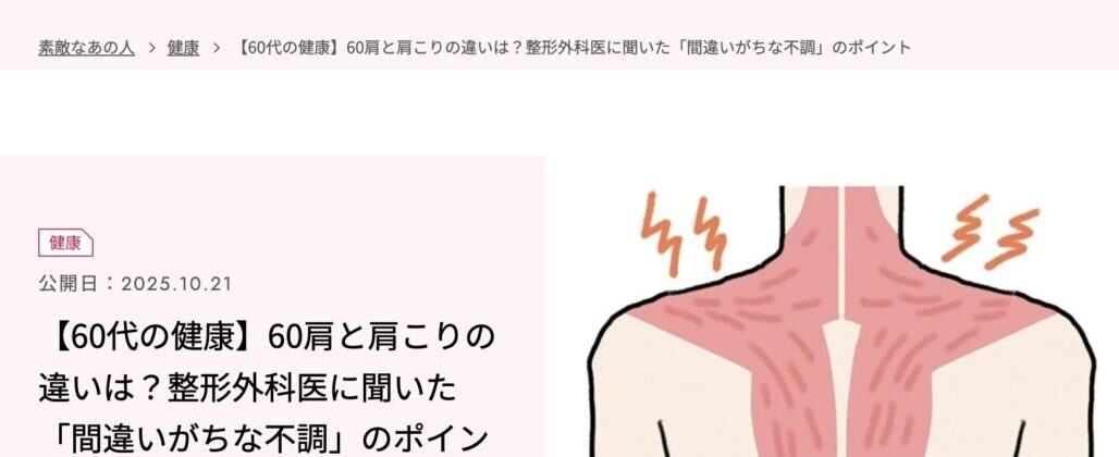 【掲載のお知らせ】「素敵なあの人Web」にて60肩と肩こりの違いについての記事が掲載されました!